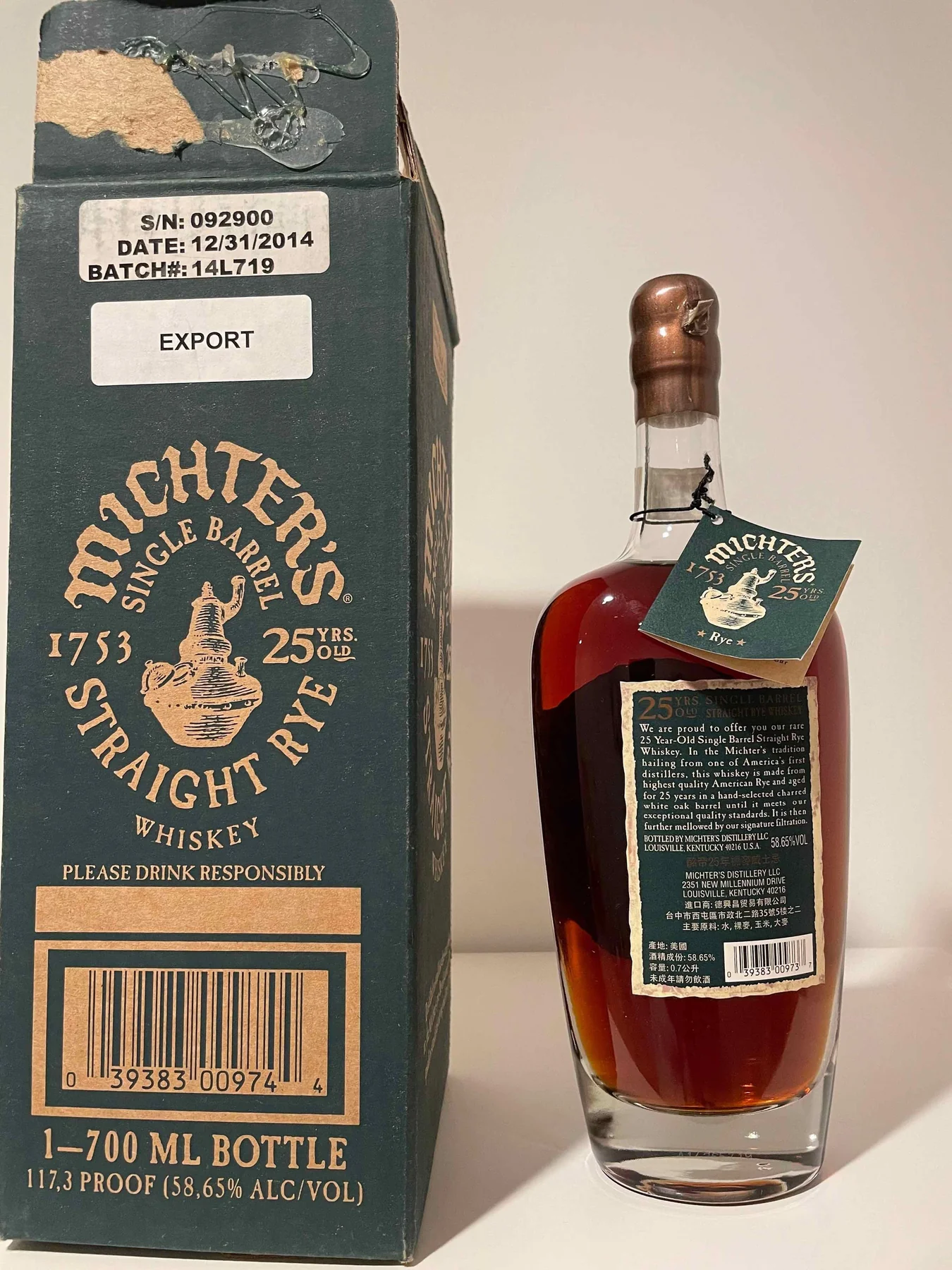 Widely considered some of the best rye that has ever been produced, this Michter’s 25 year rye from 2014 is a must have for all collectors and consumers.  This particular bottle was a rare export to Taiwan and actually reflects native language on the back of the bottle.  These are exceedingly valuable to collectors as the rarity of such an incredible bottle into Taiwan makes them much more difficult to find than the American releases.