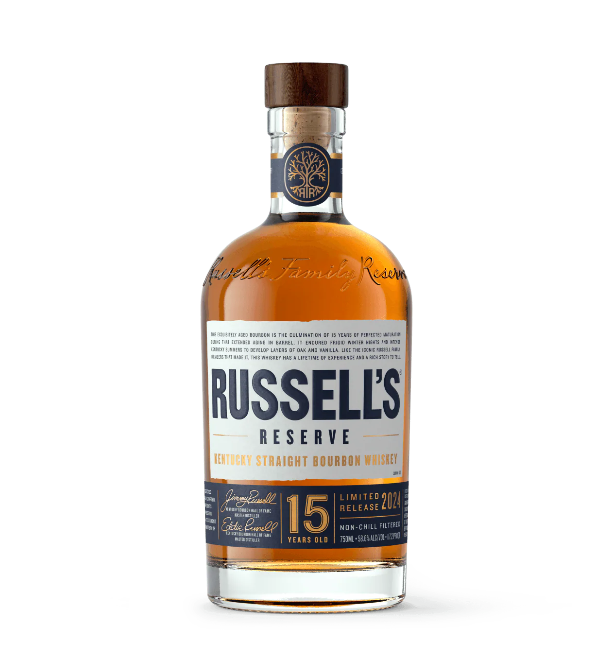 Bottled at 117.2, Russell’s Reserve 15 Year Old bourbon is an example of Kentucky craft whiskey excellence, with pronounced notes of tobacco and mature oak and a long lasting finish.